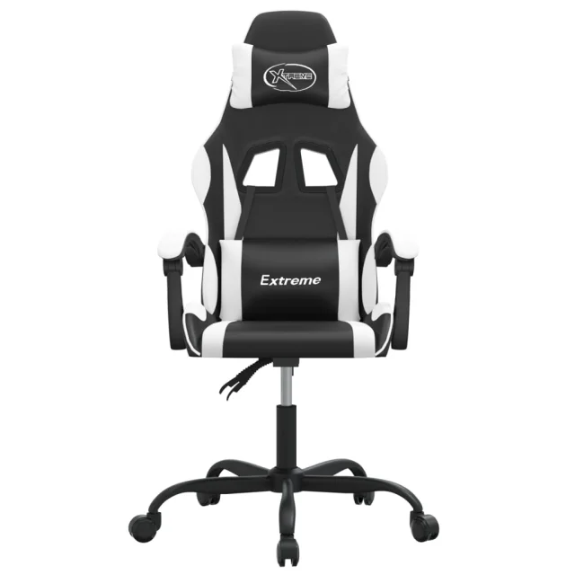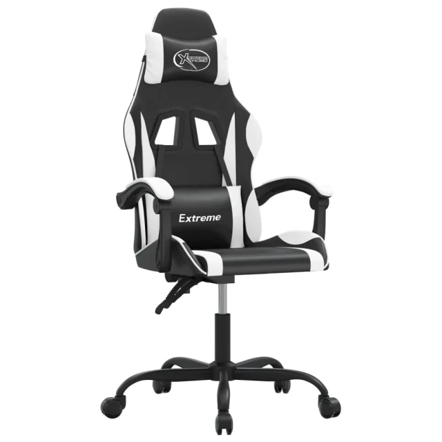 vidaXL Vrtljiv gaming stol črno in belo umetno usnje