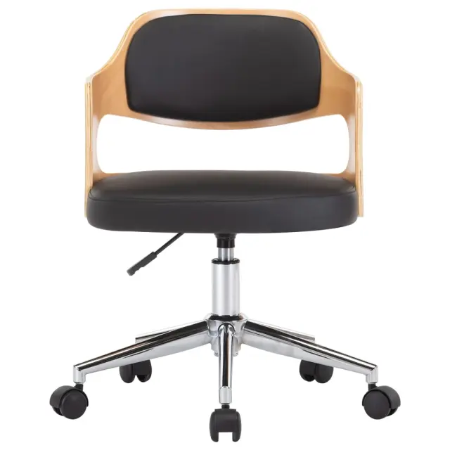 vidaXL Vrtljiv pisarniški stol črn ukrivljen les in umetno usnje