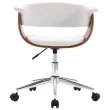 vidaXL Vrtljiv pisarniški stol bel ukrivljen les in umetno usnje