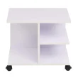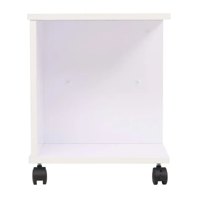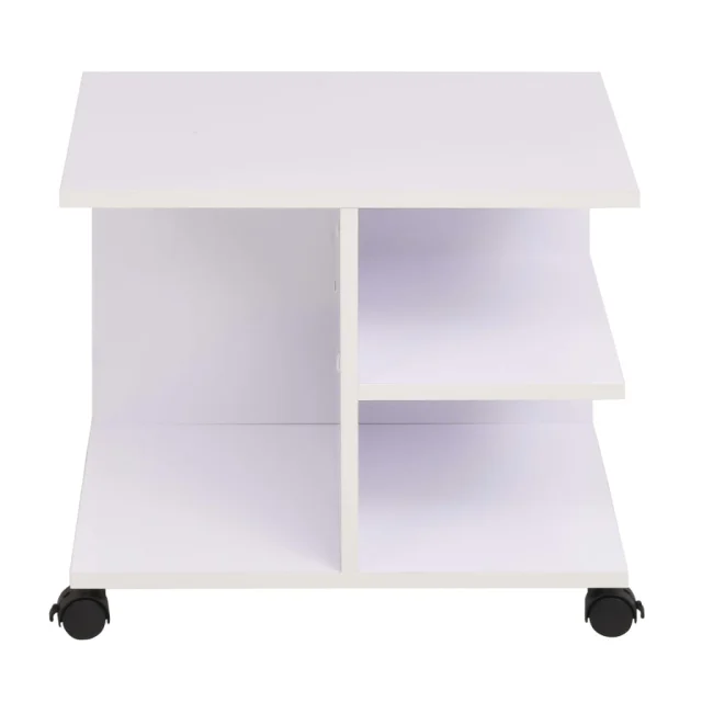 Polica za shranjevanje je sestavljena iz izdelanega lesenega okvirja z melaminsko prevleko, ki je preprosta za čiščenje. Trden zgornji del je idealen za odlaganje različnih predmetov, kot so knjige, prenosni računalniki itd. Pod zgornjim delom so 1 velik in 2 majhna predelka, ki nudijo dovolj prostora za shranjevanje vseh vrst stvari. Kolesca omogočajo enostavno in priročno premikanje police.