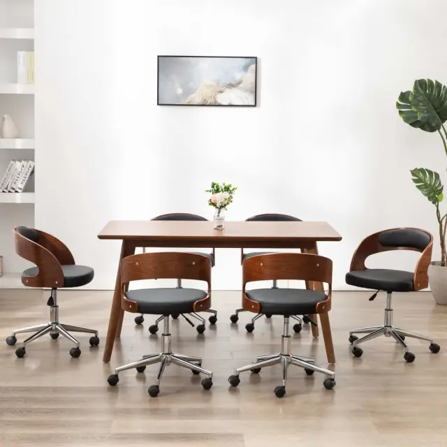 vidaXL Vrtljivi jedilni stoli 6 kosov črni ukrivljen les in um. usnje