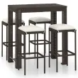 vidaXL Vrtna barska garnitura 5-delna z blazinami poli ratan rjava