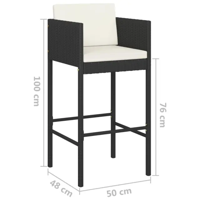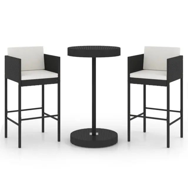 vidaXL Vrtna barska garnitura 3-delna z blazinami poli ratan črna