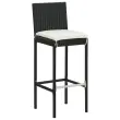 Ta vrtna barska garnitura z elegantnim in sodobnim dizajnom bo odlična izbira za jedilnico ali sprostitev na vrtu. Trpežen material: PE ratan, znan tudi kot poli ratan, je močan sintetični material, ki ne potrebuje vzdrževanja in je videti kot naravni ratan. Je lahek, enostaven za čiščenje in se zaradi svoje vzdržljivosti in odpornosti na vremenske vplive pogosto uporablja za zunanje pohištvo. Ti barski stoli so izdelani iz lahkega ratana PE, so trpežni in enostavni za premikanje. Trdna mizna plošča: Trden akacijev les je čudovit naraven material. Akacijev les je tropski trden les, ki je gost, močan in vzdržljiv. Ta barska miza je izdelana iz trdnega akacijevega lesa, zato je trdna in stabilna. Nanjo lahko odložite svoje prigrizke, pijačo in vse svoje najljubše okrasne predmete. Udobna izkušnja sedenja: Debele oblazinjene sedežne blazine in vgrajeni nasloni za noge zagotavljajo dodatno udobje pri sedenju na stolčku. Prevleko je mogoče odstraniti in oprati: Te sedežne blazine imajo odstranljive prevleke za lažje pranje in vzdrževanje. Dobro je vedeti:Če želite, da vaše zunanje pohištvo ostane lepo, vam priporočamo, da ga zaščitite z vodoodporno prevleko.Barska miza:Material: Trden akacijev les z oljnim premazomDimenzije: 60 x 60 x 105 cm (D x Š x V)Barski stol:Barva: ČrnaMaterial: PE ratan, jeklen okvir s prašnim premazomDimenzije: 40 x 44 x 108 cm (Š x G x V)Višina sedeža od tal (brez blazine): 76 cmBlazina:Barva: Kremno belaMaterial prevleke: Tkanina (100 % poliester)Dimenzije: 40 x 37 x 4 cm (Š x G x D)Potrebno sestavljanje: DaPaket vsebuje:1 x Barska miza4 x Barski stolček4 x Sedežna blazina s snemljivo in pralno prevleko 3295264