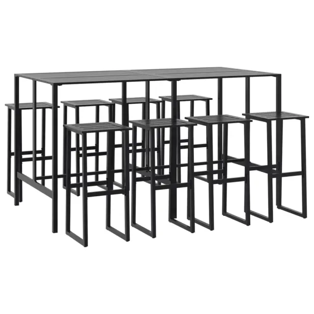 vidaXL Vrtna barska garnitura 9-delna črno prašno lakirano jeklo