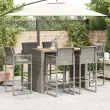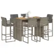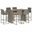 vidaXL Vrtna barska garnitura z blazinami 7-delna siv ratan/akacija
