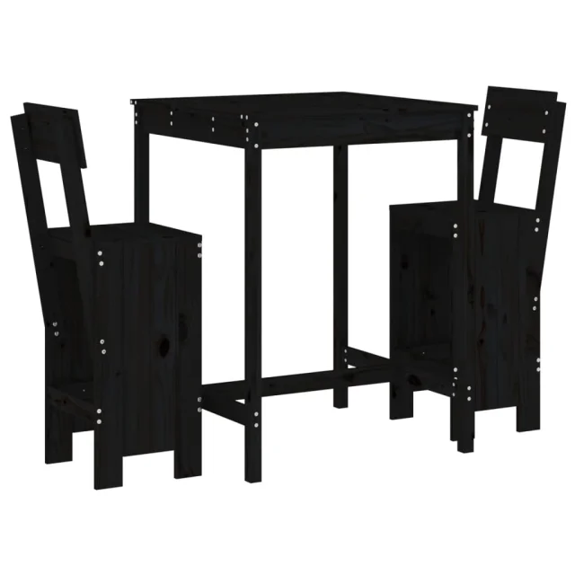 vidaXL Vrtna barska garnitura 3-delna črna trdna borovina