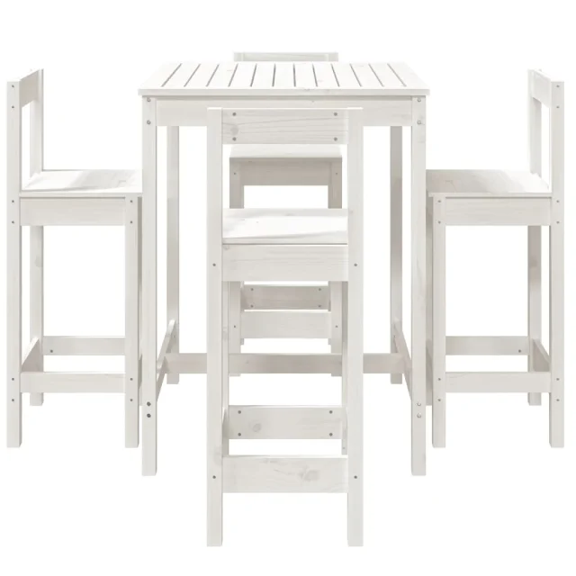 vidaXL Vrtna barska garnitura 5-delna bela trdna borovina