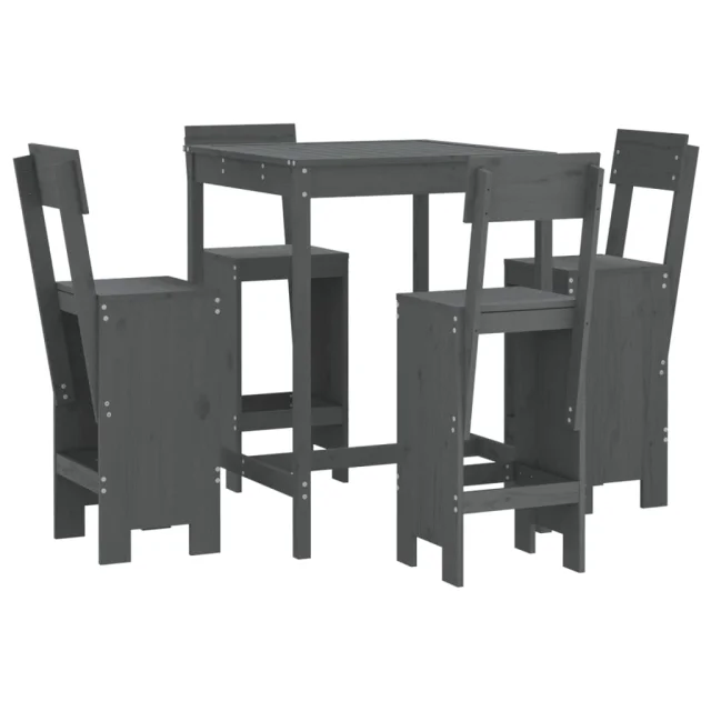 vidaXL Vrtna barska garnitura 5-delna siva trdna borovina