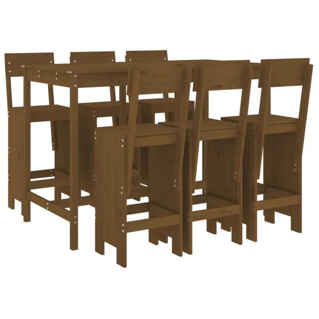 vidaXL Vrtna barska garnitura 7-delna medeno rjava trdna borovina