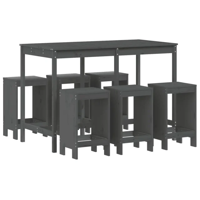 vidaXL Vrtna barska garnitura 7-delna siva trdna borovina