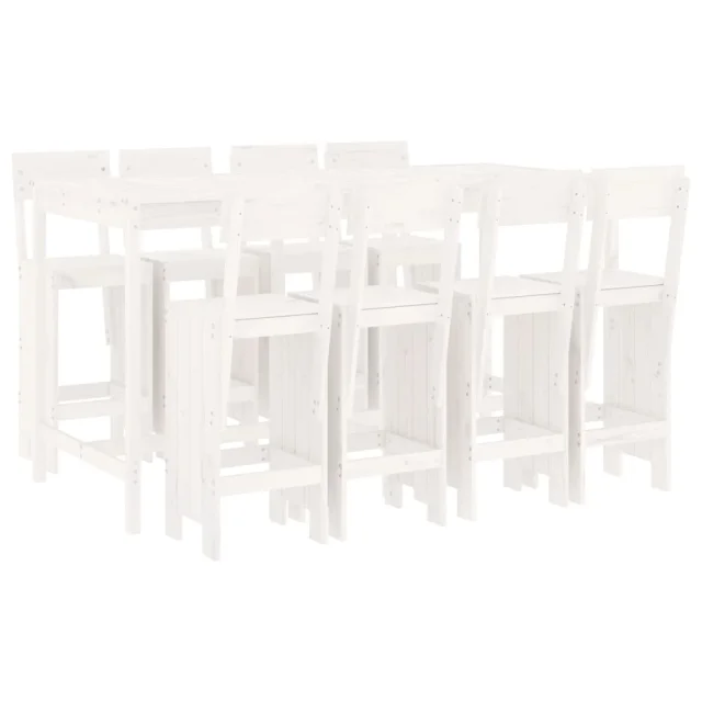 vidaXL Vrtna barska garnitura 9-delna bela trdna borovina