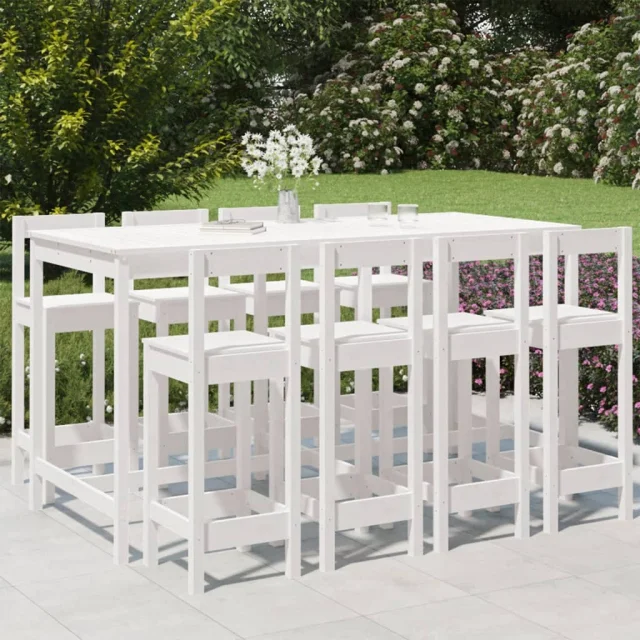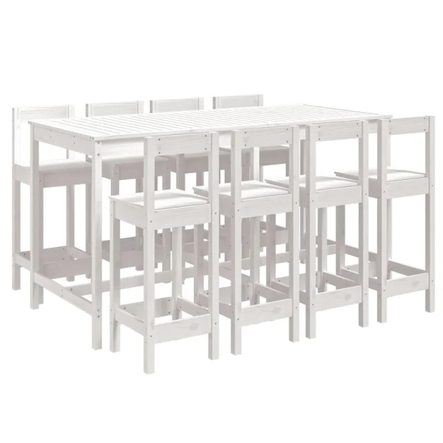 vidaXL Vrtna barska garnitura 9-delna bela trdna borovina