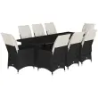 vidaXL Vrtna bistro garnitura 9-delna z blazinami črn poli ratan