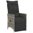 S to udobno bistro garnituro lahko z družino in prijatelji uživate v kavi ali klepetu na vrtu, dvorišču ali balkonu. Vzdržljiv material: PE ratan, znan tudi kot poli ratan, je močan sintetični material, ki zahteva malo vzdrževanja in je videti kot naravni ratan. Je lahek, enostaven za čiščenje in se zaradi svoje vzdržljivosti in odpornosti na vremenske vplive pogosto uporablja za zunanje pohištvo.Nastavljivo naslonjalo za hrbet in noge: Ta vrtni sedež ima ročaj. Naslonjalo za hrbet in naslonjalo za noge lahko s potegom ročaja nastavite v poljuben položaj in ju hitro vrnete v prvotni položaj.Udobno sedenje: To zunanje pohištvo z debelo oblazinjenimi blazinami zagotavlja udobno sedenje.Prevleko je mogoče odstraniti in oprati: Te sedežne blazine imajo odstranljive prevleke za lažje pranje in vzdrževanje. Hrbtne blazine imajo na zadnji strani zavihek za enostavno pritrditev na naslonjala.Steklena mizna plošča: Površina zunanje mize je izdelana iz močnega in trpežnega kaljenega stekla, kar omogoča enostavno čiščenje z vlažno krpo in vašemu zunanjemu prostoru doda pridih elegance. Dobro je vedeti:Če želite, da vaše zunanje pohištvo ostane lepo, vam priporočamo, da ga zaščitite z vodoodporno prevleko.UV-odpornoPotrebno sestavljanje: DaStol z naslonjalom:Barva: SivaMaterial: PE ratan, jeklen okvir s prašnim premazomDimenzije v sedečem položaju: 56 x 59 x 92 cm (Š x G x V)Dimenzije v ležečem položaju: 56 x 83 x 85 cm (Š x G x V)Velikost sedišča: 49 x 50,5 cm (Š × G)Višina sedeža od tal: 44 cmVišina naslonjala za roke, merjena od tal: 63 cmMaksimalna nosilnost (na sedež): 110 kgMiza:Barva: SivaMaterial: PE ratan, jeklo s prašnim premazom, kaljeno stekloDimenzije: 190 x 90 x 75 cm (D x Š x V)Blazina:Barva: Temno sivaMaterial prevleke: Tkanina (100 % poliester)Polnilo sedežne blazine: PenaPolnilo hrbtne blazine: bombažna vlaknaDimenzije sedežne blazine: 49 x 90 x 3 cm (Š x G x D)Dimenzije hrbtne blazine: 70 x 49 x 10 cm (D x Š x D) Paket vsebuje:6 x Vrtni stol s funkcijo nagiba6 x Sedežna blazina s snemljivo pralno prevleko6 x Blazina za hrbet1 x Vrtna miza 3276897