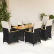vidaXL Vrtna bistro garnitura 7-delna z blazinami črn poli ratan