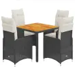 vidaXL Vrtna bistro garnitura 5-delna z blazinami črn poli ratan