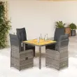 vidaXL Vrtna bistro garnitura 5-delna z blazinami siv poli ratan