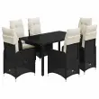 vidaXL Vrtna bistro garnitura 7-delna z blazinami črn poli ratan