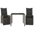 S to udobno bistro garnituro lahko z družino in prijatelji uživate v kavi ali klepetu na vrtu, dvorišču ali balkonu. Vzdržljiv material: PE ratan, znan tudi kot poli ratan, je močan sintetični material, ki zahteva malo vzdrževanja in je videti kot naravni ratan. Je lahek, enostaven za čiščenje in se zaradi svoje vzdržljivosti in odpornosti na vremenske vplive pogosto uporablja za zunanje pohištvo.Nastavljivo naslonjalo za hrbet in noge: Ta vrtni sedež ima ročaj. Naslonjalo za hrbet in naslonjalo za noge lahko s potegom ročaja nastavite v poljuben položaj in ju hitro vrnete v prvotni položaj.Udobno sedenje: To zunanje pohištvo z debelo oblazinjenimi blazinami zagotavlja udobno sedenje.Prevleko je mogoče odstraniti in oprati: Te sedežne blazine imajo odstranljive prevleke za lažje pranje in vzdrževanje. Hrbtne blazine imajo na zadnji strani zavihek za enostavno pritrditev na naslonjala.Steklena mizna plošča: Površina zunanje mize je izdelana iz močnega in trpežnega kaljenega stekla, kar omogoča enostavno čiščenje z vlažno krpo in vašemu zunanjemu prostoru doda pridih elegance. Dobro je vedeti:Če želite, da vaše zunanje pohištvo ostane lepo, vam priporočamo, da ga zaščitite z vodoodporno prevleko.UV-odpornoPotrebno sestavljanje: DaNastavljiv vrtni stol z oporo za noge:Barva: SivaMaterial: PE ratan, jeklen okvir s prašnim premazomDimenzije v sedečem položaju: 54,5 x 58,5 x 92 cm (Š x G x V)Dimenzije v ležečem položaju: 54,5 x 111,5 x 83 cm (Š x G x V)Velikost sedeža: 47 x 48 cm (Š x G)Višina sedeža, merjena od tal: 43,5 cmVišina naslonjala za roke od tal: 65 cmMaksimalna nosilnost (na sedež): 110 kgMiza:Barva: SivaMaterial: PE ratan, jeklo s prašnim premazom, kaljeno stekloDimenzije: 90 x 90 x 75 cm (D x Š x V)Blazina:Barva: Temno sivaMaterial prevleke: Tkanina (100 % poliester)Polnilo sedežne blazine: PenaPolnilo hrbtne blazine: bombažna vlaknaDimenzije sedežne blazine: 45/49 x 93 x 3 cm (Š x G x D)Dimenzije hrbtne blazine: 70 x 48 x 10 cm (D x Š x D) Paket vsebuje:2 x Nastavljiv vrtni stol z oporo za noge2 x Sedežna blazina s snemljivo pralno prevleko2 x Blazina za hrbet1 x Vrtna miza 3277165