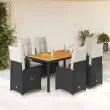 vidaXL Vrtna bistro garnitura 7-delna z blazinami črn poli ratan