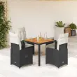 vidaXL Vrtna bistro garnitura 5-delna z blazinami črn poli ratan