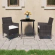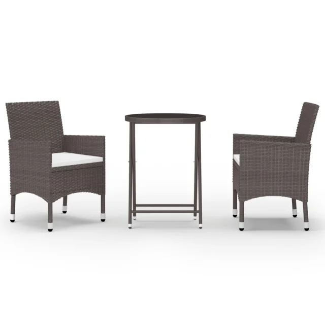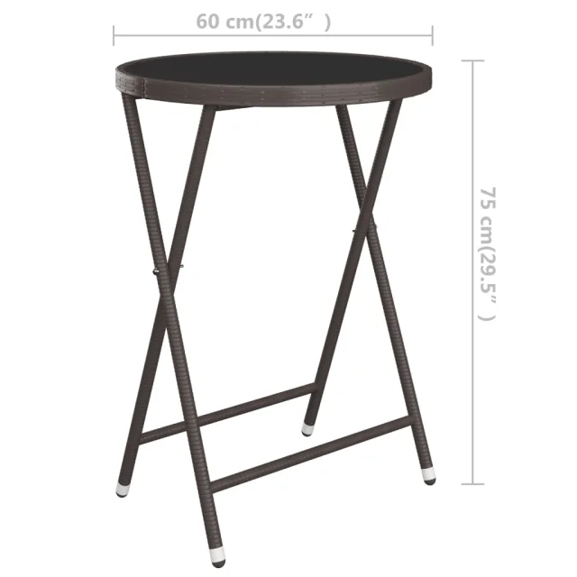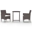 vidaXL Vrtna bistro garnitura 3-delna poli ratan in steklo rjava