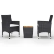 vidaXL Vrtna bistro garnitura 3-delna poli ratan in trden les črna