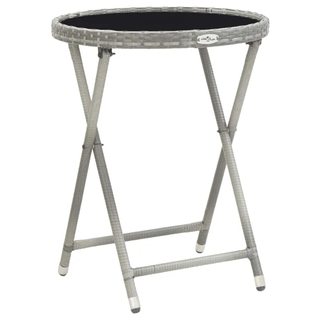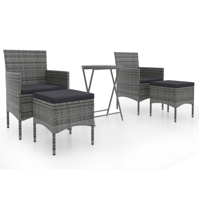 vidaXL Vrtna bistro garnitura 5-delna poli ratan in steklo siva