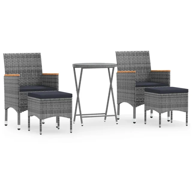 vidaXL Vrtna bistro garnitura 5-delna poli ratan in steklo siva