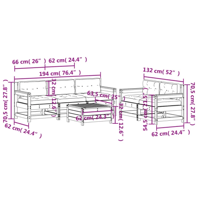 vidaXL Vrtna garnitura 6-delna z blazinami trden les douglas