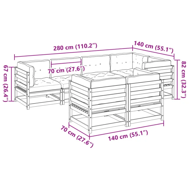 vidaXL Vrtna garnitura 7-delna z blazinami impregnirana borovina