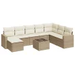 vidaXL Vrtna garnitura 9-delna z blazinami bež poli ratan
