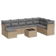 vidaXL Vrtna garnitura 9-delna z blazinami bež poli ratan