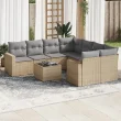 vidaXL Vrtna garnitura 9-delna z blazinami bež poli ratan