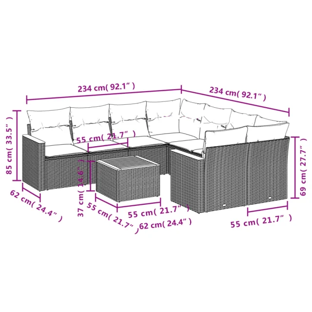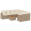 vidaXL Vrtna garnitura 9-delna z blazinami bež poli ratan
