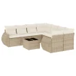 vidaXL Vrtna garnitura 9-delna z blazinami bež poli ratan