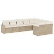 vidaXL Vrtna garnitura 9-delna z blazinami bež poli ratan