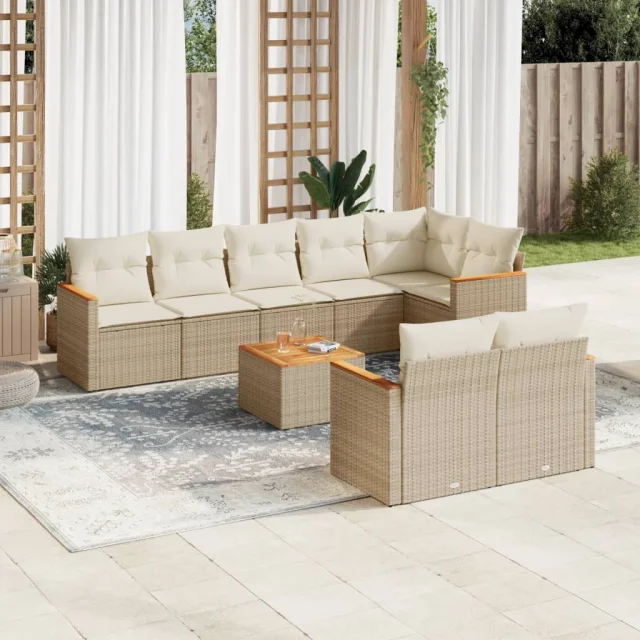 vidaXL Vrtna garnitura 9-delna z blazinami bež poli ratan