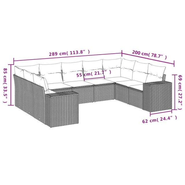 vidaXL Vrtna garnitura 9-delna z blazinami bež poli ratan