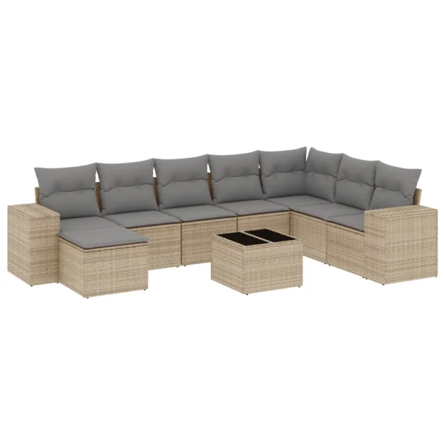 vidaXL Vrtna garnitura 9-delna z blazinami bež poli ratan