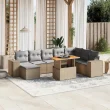 vidaXL Vrtna garnitura 9-delna z blazinami bež poli ratan