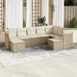 vidaXL Vrtna garnitura 9-delna z blazinami bež poli ratan