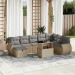 vidaXL Vrtna garnitura 9-delna z blazinami bež poli ratan