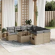 vidaXL Vrtna garnitura 9-delna z blazinami bež poli ratan
