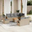 vidaXL Vrtna garnitura 9-delna z blazinami bež poli ratan