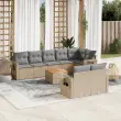 vidaXL Vrtna garnitura 9-delna z blazinami bež poli ratan