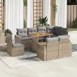 Ta vrtna sedežna garnitura je popoln dodatek za vaše dvorišče, teraso ali verando, saj zagotavlja udoben in vabljiv prostor za klepet z družino in prijatelji ali preprosto za sprostitev in uživanje na prostem. Trpežen material: PE ratan, znan tudi kot poli ratan, je močan sintetični material, ki ne potrebuje vzdrževanja in je videti kot naravni ratan. Je lahek, enostaven za čiščenje in se zaradi svoje vzdržljivosti in odpornosti na vremenske vplive pogosto uporablja za zunanje pohištvo.Funkcija shranjevanja z vodoodporno torbo: Vrtno pohištvo ima pod sedežem prostor za shranjevanje, opremljen z vodoodporno torbo za shranjevanje blazin, igrač in drugih stvari. Notranjo torbo je mogoče varno pritrditi na zunanje pohištvo s kavljem in zanko za večjo stabilnost.Nastavljiva mizna plošča: Z dvigom mizne plošče lahko mizo povišate, s čimer se zunanja klubska mizica spremeni v jedilno mizo. Popolna je za sprejemanje gostov ali uživanje v obrokih na prostem.Prevleko je mogoče odstraniti in oprati: Te sedežne blazine imajo odstranljive prevleke za lažje pranje in vzdrževanje.Modularna zasnova: Ta komplet zunanjega pohištva ima modularno zasnovo, zaradi česar je popolnoma prilagodljiv in enostaven za premikanje, tako da lahko zunanjo garnituro postavite kakor koli želite. Dobro je vedeti:Če želite, da vaše zunanje pohištvo ostane lepo, vam priporočamo, da ga zaščitite z vodoodporno prevleko.Dimenzije vodoodporne vreče: 55 x 53 x 34 cm (D x Š x V)Maksimalna nosilnost (na sedež): 110 kgUV-odpornoPlastične nastavljive nogePotrebno sestavljanje: DaKotni sedež:Barva: BežMaterial: PE ratan, jeklen okvir s prašnim premazomDimenzije: 62 x 62 x 69 cm (Š x G x V)Velikost sedeža: 55 x 55 cm (Š x G)Višina sedeža od tal (brez blazine): 37 cmKotni sedež s naslonom za roke iz ratana:Barva: BežMaterial: PE ratan, jeklen okvir s prašnim premazomDimenzije: 65,5 x 62 x 69 cm (Š x G x V)Velikost sedeža: 55 x 55 cm (Š x G)Višina sedeža od tal (brez blazine): 37 cmVišina naslonjal za roke od tal: 55 cmŠirina naslonjala za roke: 10 cmSrednji sedež:Barva: BežMaterial: PE ratan, jeklen okvir s prašnim premazomDimenzije: 55 x 62 x 69 cm (Š x G x V)Velikost sedeža: 55 x 55 cm (Š x G)Višina sedeža od tal (brez blazine): 37 cmMiza:Barva: BežMaterial: PE ratan, prašno premazano jeklo, trden akacijev les z oljnim premazomDimenzije: 100 x 55 x 44/73 cm (D x Š x V)Blazina:Barva: Svetlo sivaMaterial prevleke: Tkanina (100 % poliester)Polnilo sedežne blazine: PenaPolnilo hrbtne blazine: bombažna vlaknaDimenzije sedežne blazine: 55 x 55 x 3 cm (Š x G x D)Dimenzije hrbtne blazine: 55 x 45 x 13 cm (D x Š x D)Paket vsebuje:1 x Vrtna miza1 x Kotni kavč s funkcijo shranjevanja z vodoodporno vrečo4 x Kotni sedež z naslonom za roke iz ratana s funkcijo shranjevanja z vodoodporno torbo3 x Srednji kavč s funkcijo shranjevanja z vodoodporno vrečo9 x Blazina za hrbet8 x Sedežna blazina s snemljivo in pralno prevleko 3327055