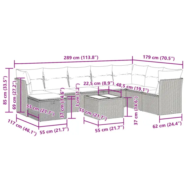 vidaXL Vrtna garnitura 9-delna z blazinami bež poli ratan