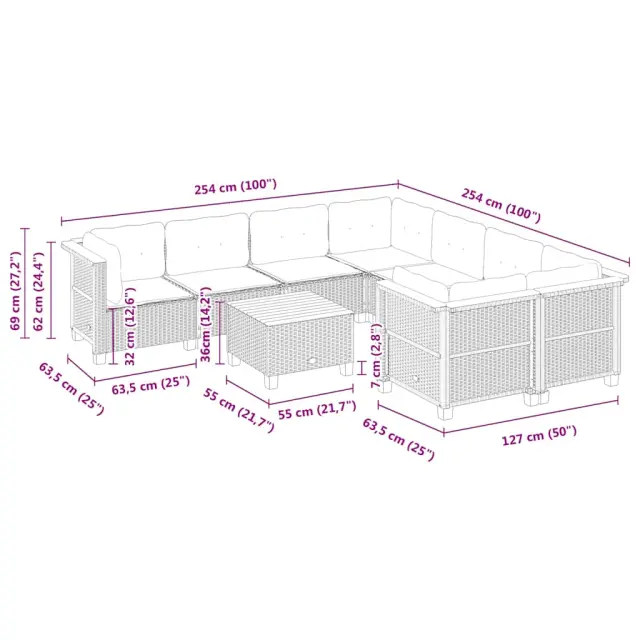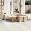 vidaXL Vrtna garnitura 9-delna z blazinami bež poli ratan